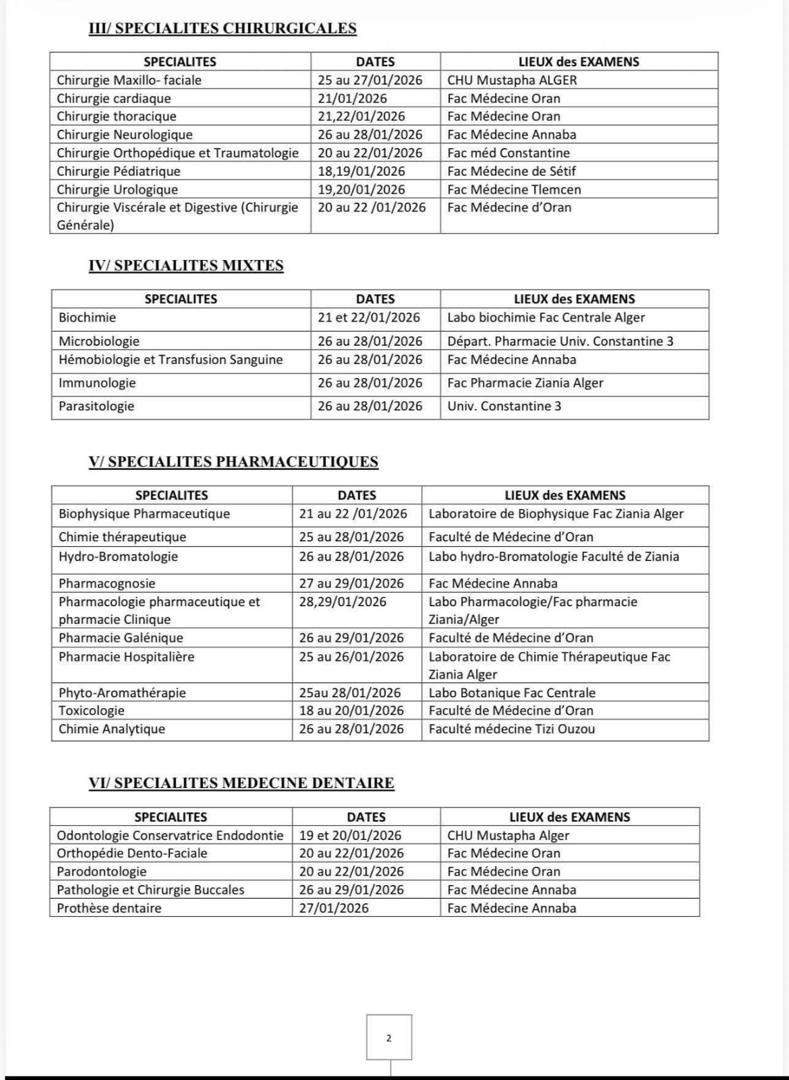 Planning des dates des examens d’accès au grade de Maître Assistant Hospitalo-Universitaire